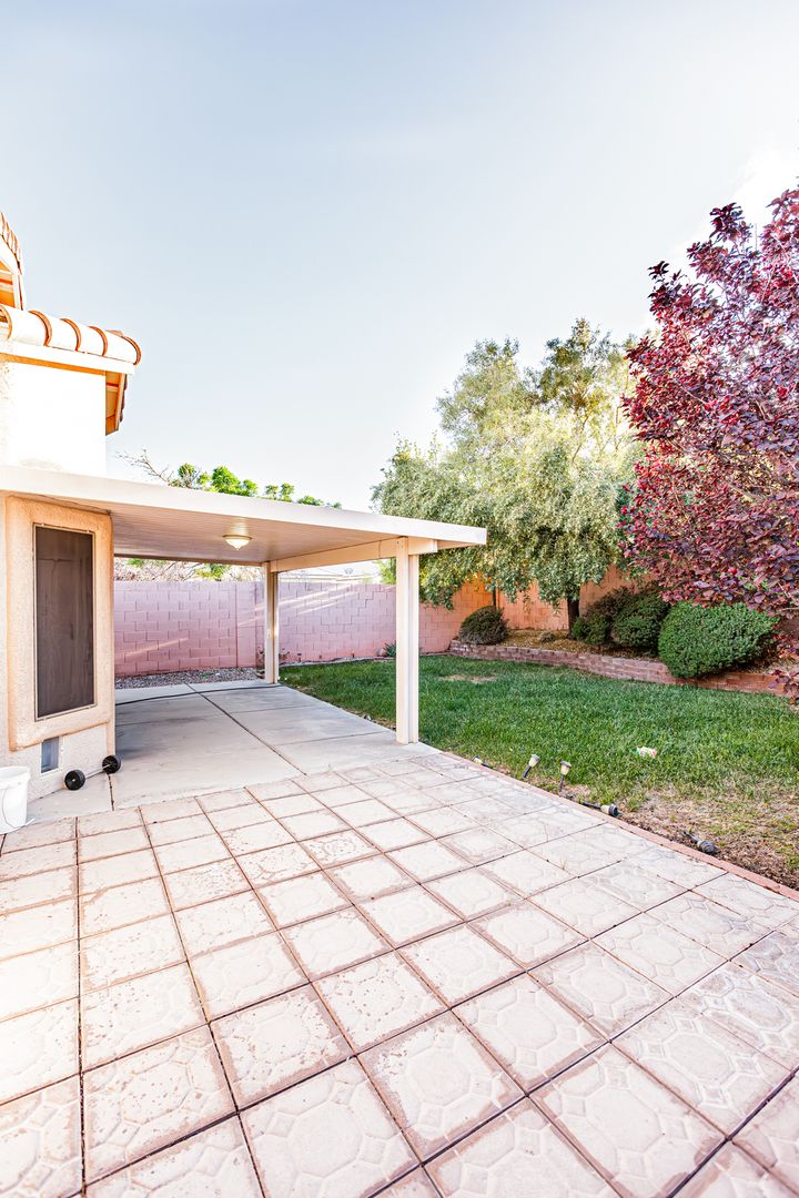 1 Story home with 3 Bedrooms, 2 bathrooms, and 2 car garage. Brand new carpet. Laminate in primary bedroom. All appliances included: Refrigerator, Stove, Microwave, Dishwasher, Washer, and Dryer. Kitchen includes granite countertops, tile backsplash and flooring. Backyard includes covered patio and grass. Front yard grass will be removed. Nearby shopping restaurants and more. Tenant required to purchase renter's insurance. A must see. Won't last.