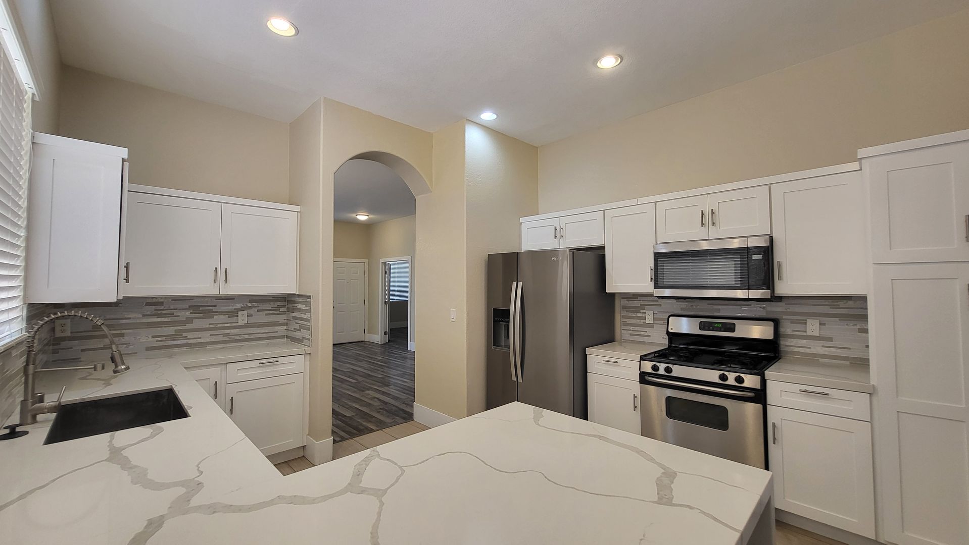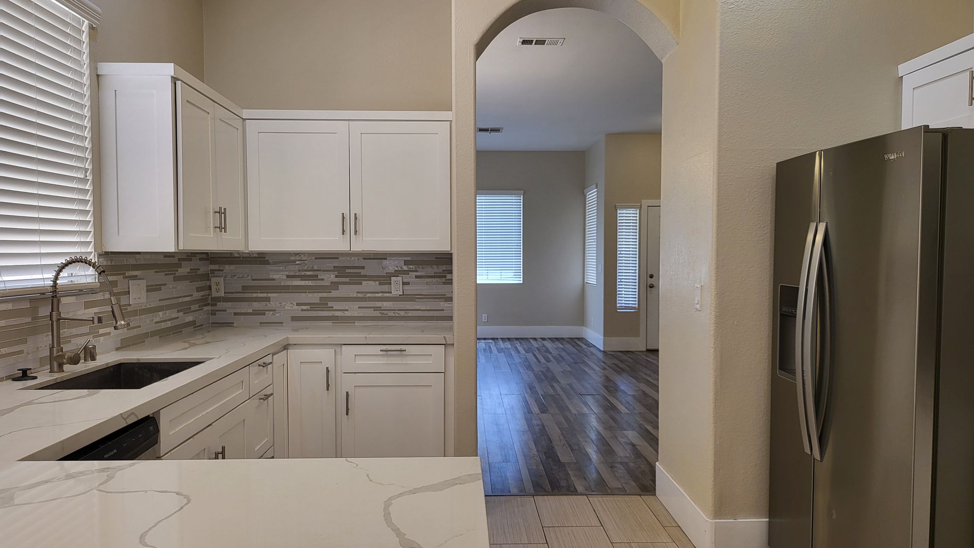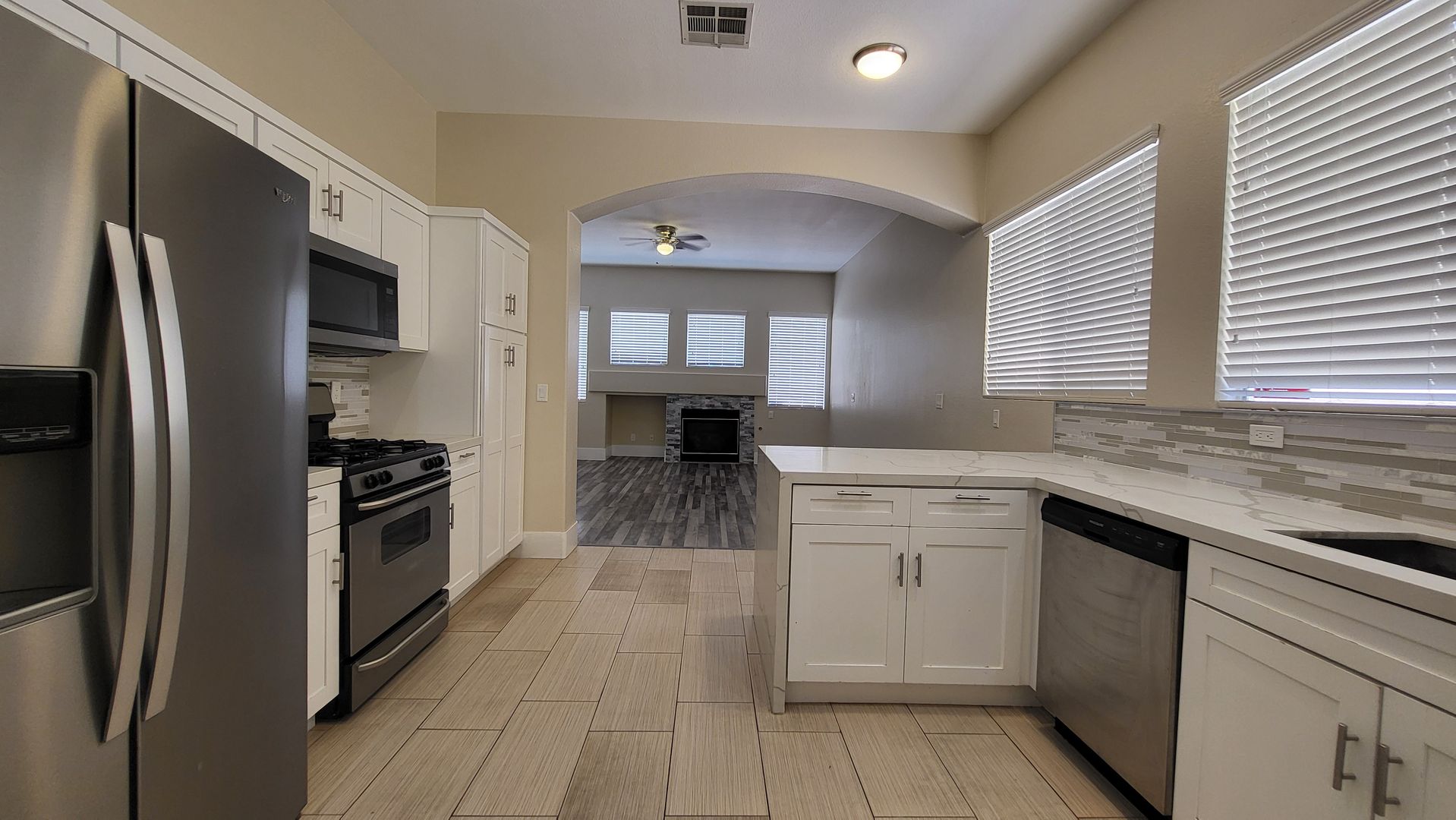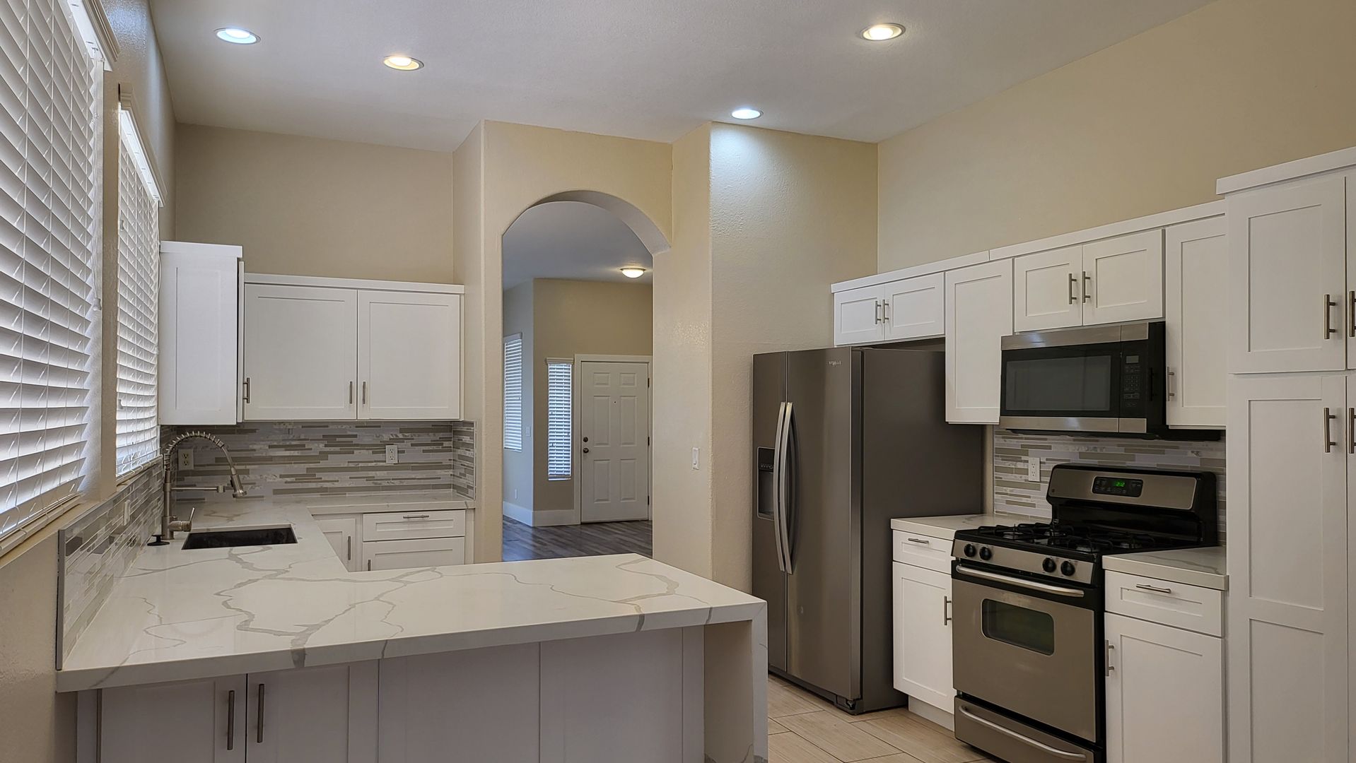 Welcome to this stunning one-story house in Summerlin Las Vegas, NV. This modern home features 4 bedrooms and 2 bathrooms, perfect for those looking for a spacious living space. The house boasts luxurious stainless steel kitchen appliances and no carpet throughout, making cleaning a breeze. Stay cool and comfortable with ceiling fans in every room. The open and modern floorplan allows for easy flow between the living spaces, ideal for entertaining guests or relaxing with family. Don't miss out on this beautiful home in a prime location.