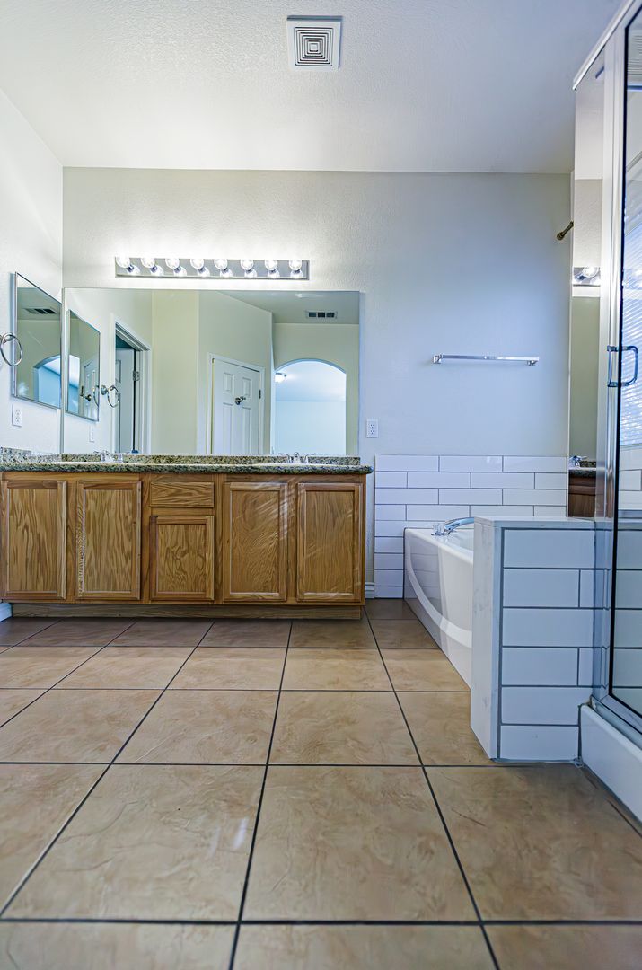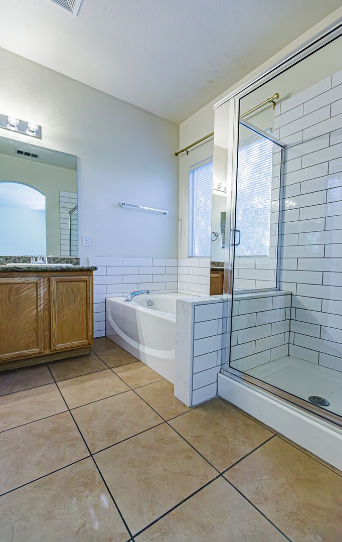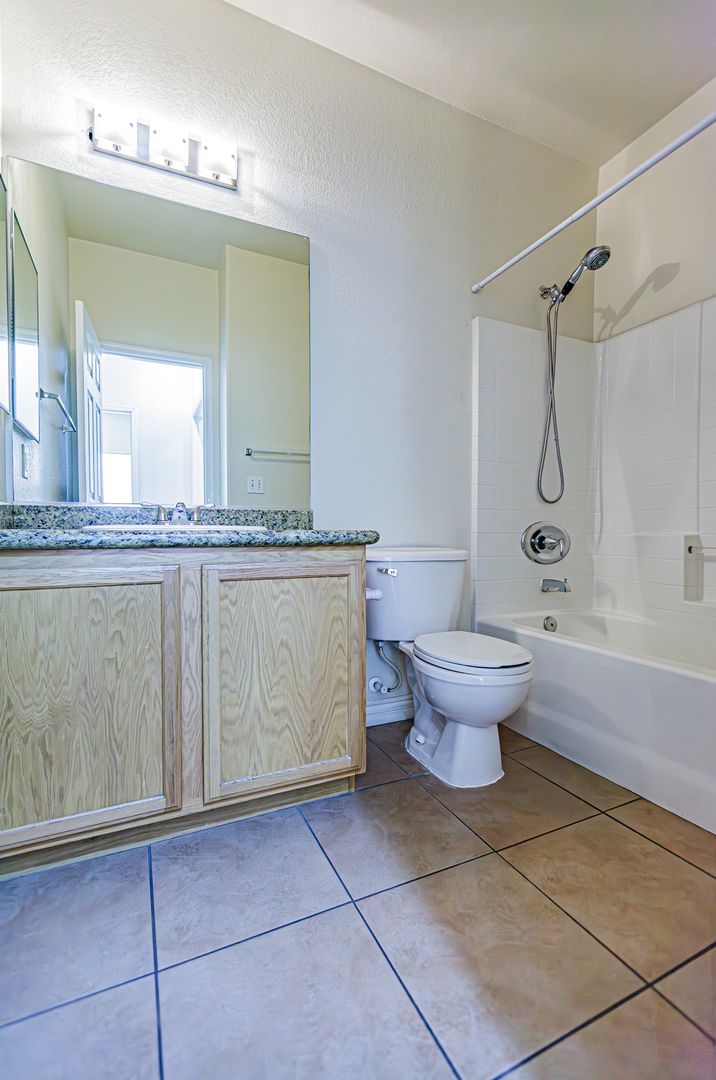 1 Story home with 3 bedrooms, 2 bathrooms and 2 car garage. Granite kitchen and bathroom counter tops. Tile and laminate flooring throughout. Master bathroom has dual sinks and separate bathtub and shower. Master has walk-in closet. Low maintenance desert landscaping front and back. Covered backyard patio. Lots of upgrades. Nearby shopping, restaurants, and more. A must see. Won't last. Tenant required to purchase renter's insurance.