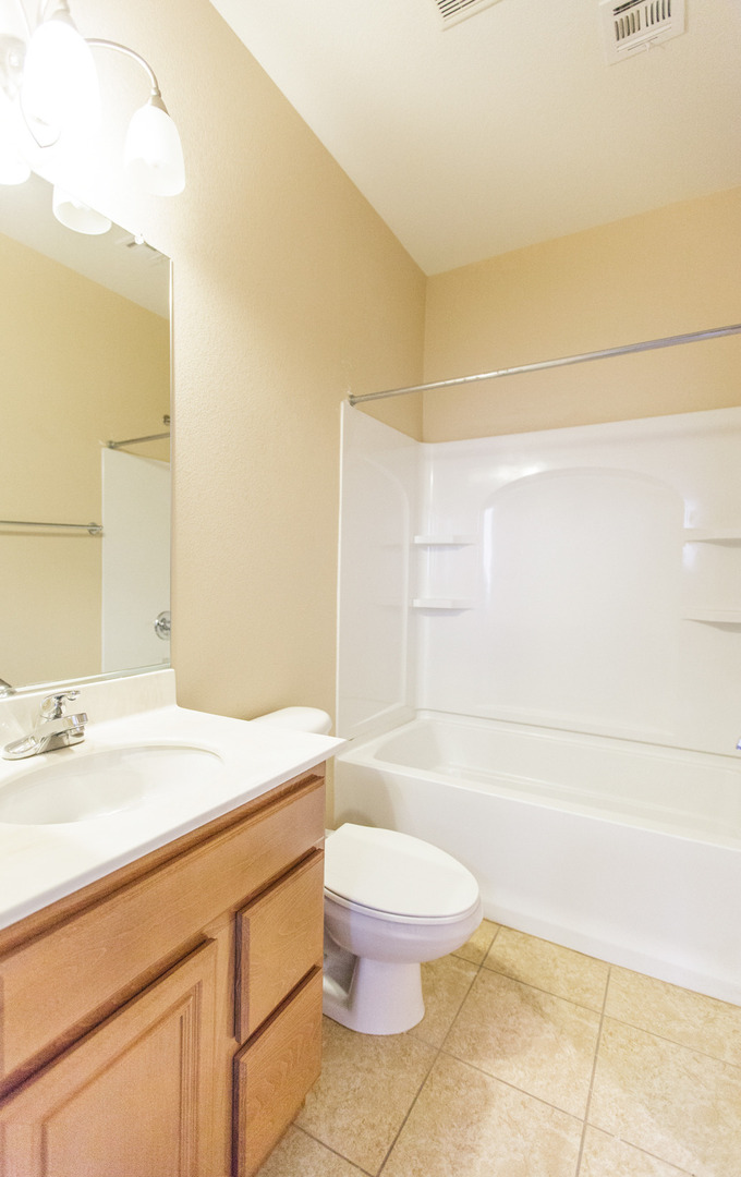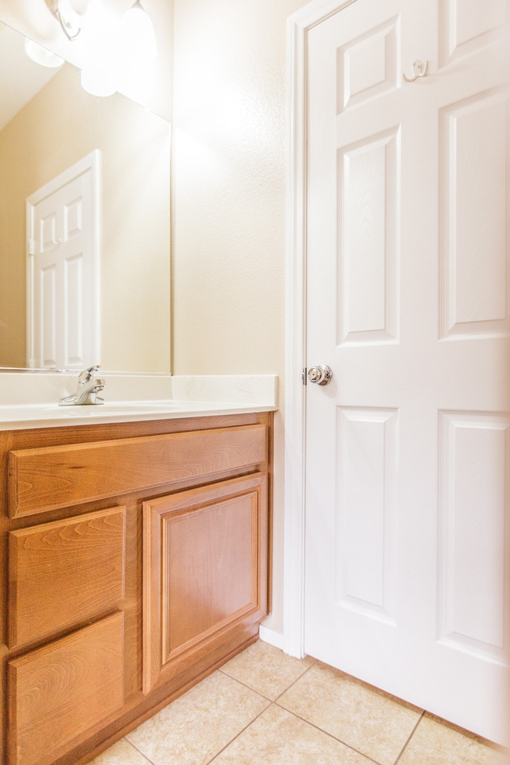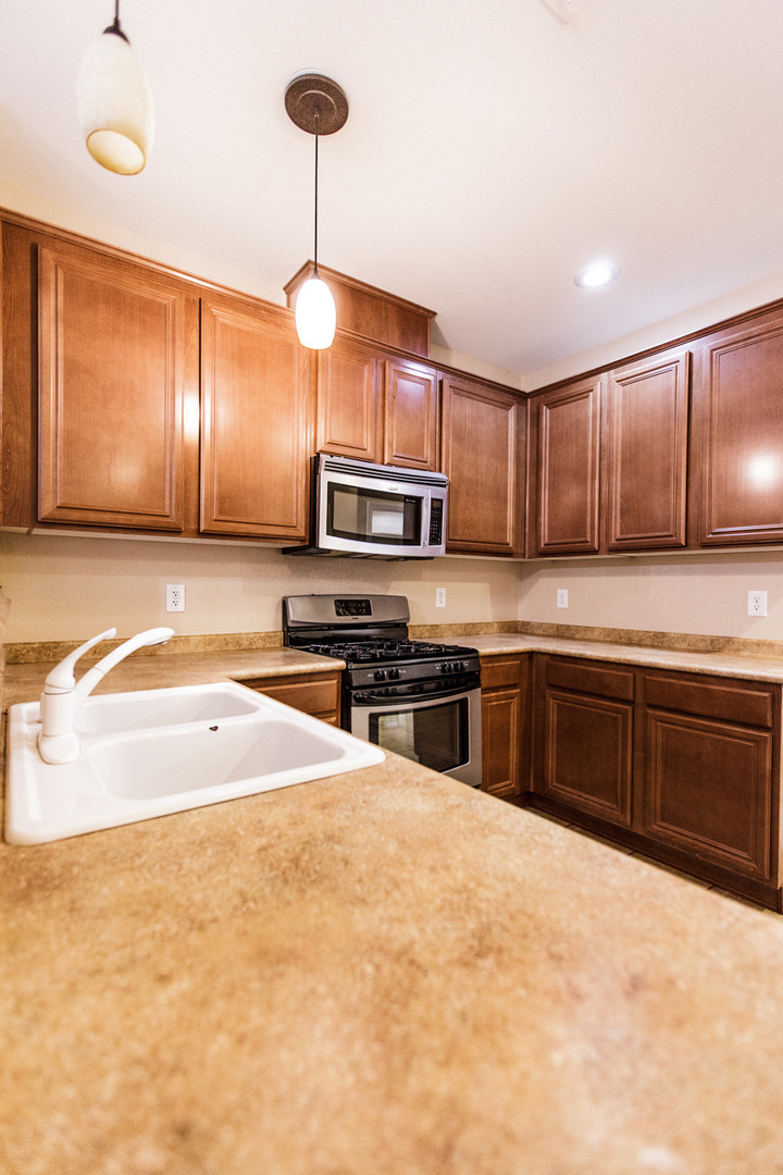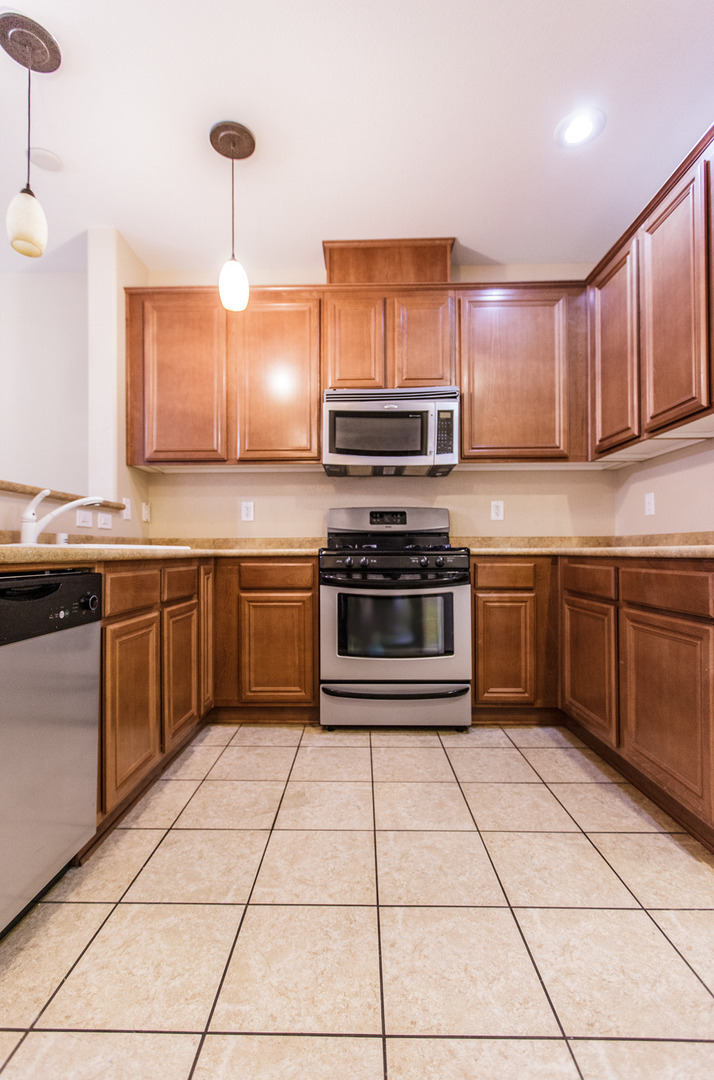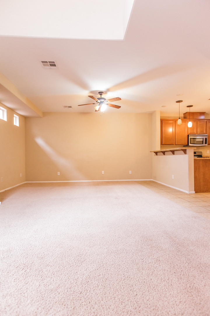 The property features an open kitchen layout with upgraded countertops and stainless steel kithcen appliances, including a refrigerator, washer, and gas dryer. For added comfort, ceiling fans are installed in both the master bedroom and the family room. You can also enjoy a low-maintenance backyard, perfect for your convenience and relaxation.